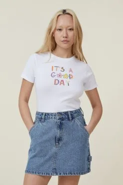 Cotton On Women Fitted Rib Graphic Longline Tee
