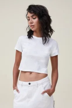 “The baby t-shirt is a serious wardrobe essential. A cropped, boxy fit that screams comfort, it pairs back perfectly with your fave high waisted denim. Pick it up in a range of trending colours for easy everyday styling.