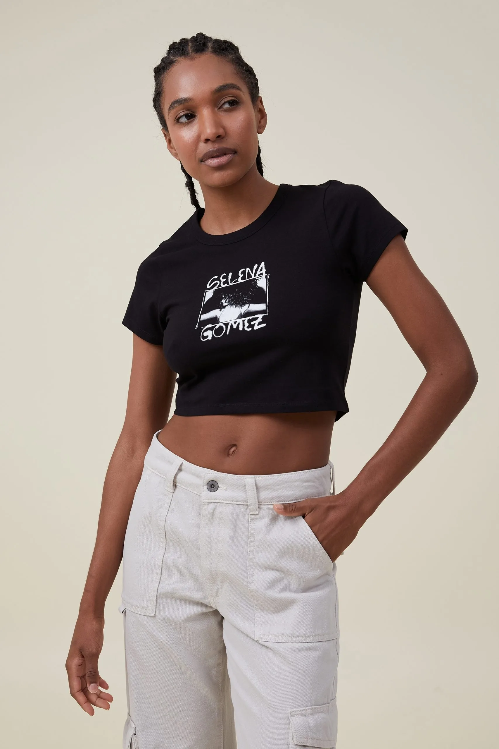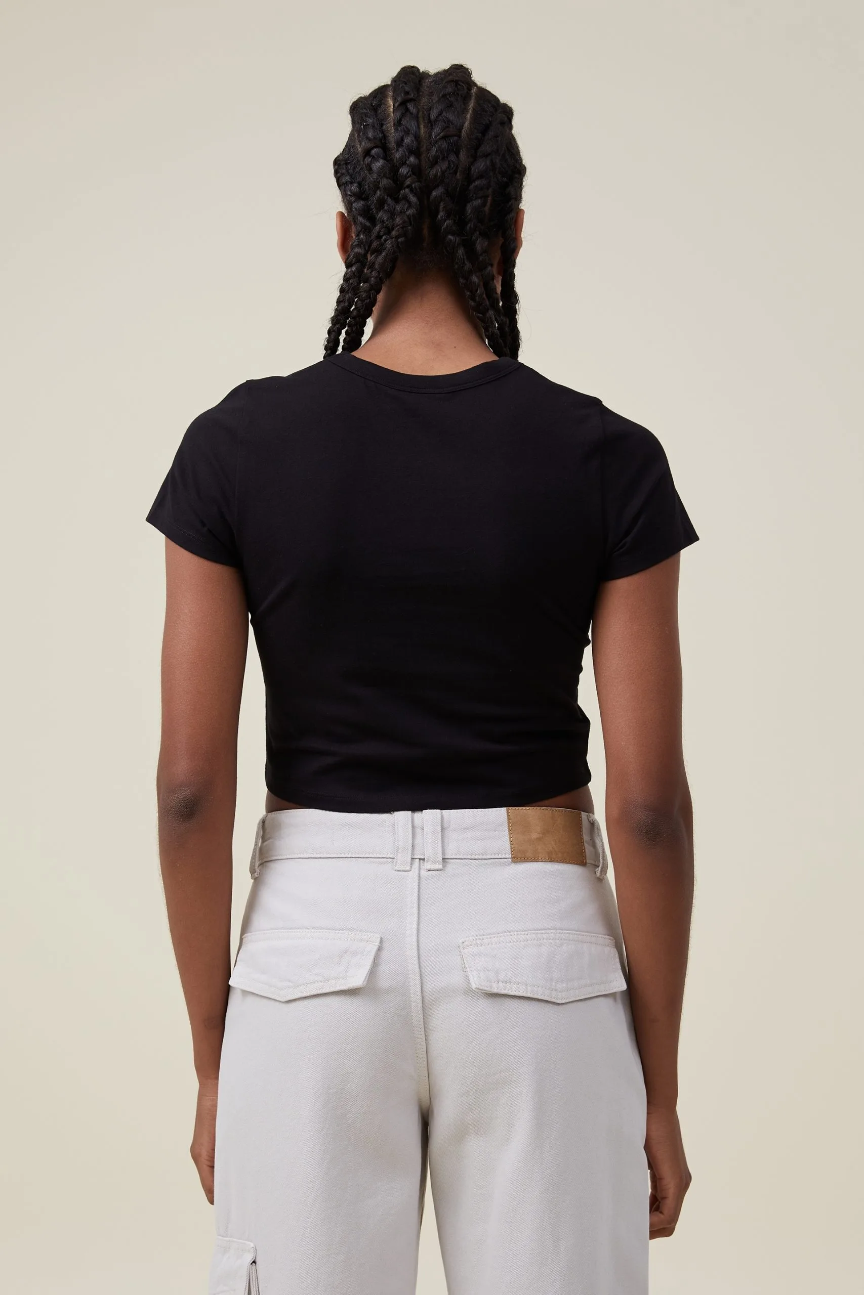 “The baby t-shirt is a serious wardrobe essential. A cropped, boxy fit that screams comfort, it pairs back perfectly with your fave high waisted denim. Pick it up in a range of trending colours for easy everyday styling.