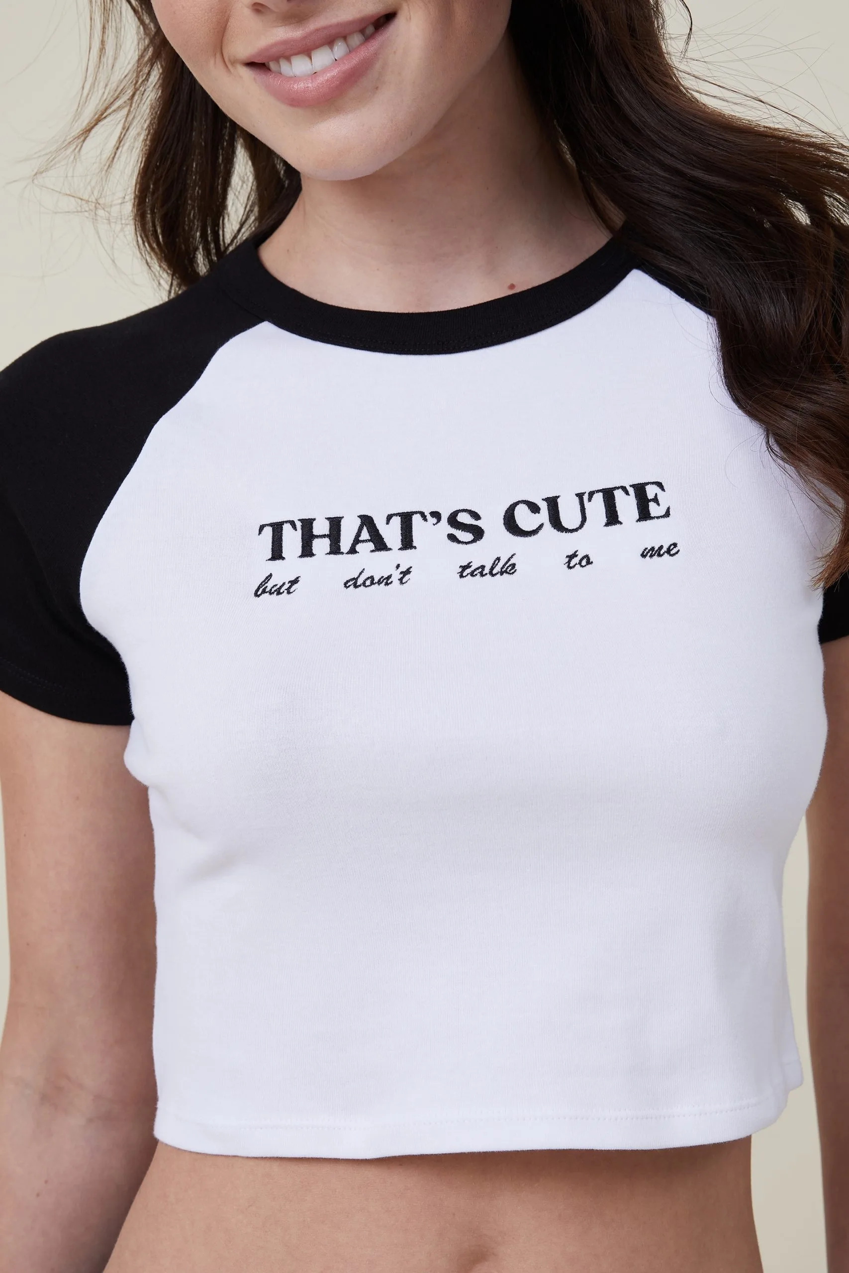 Cotton On Women Micro Fit Rib Raglan Graphic Tee
