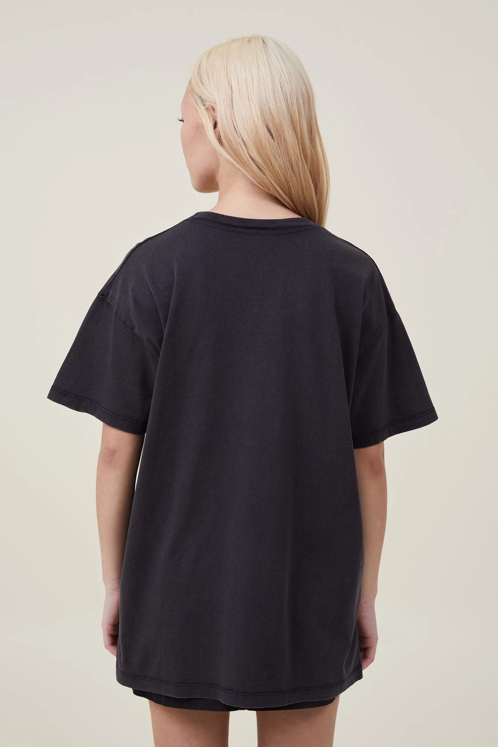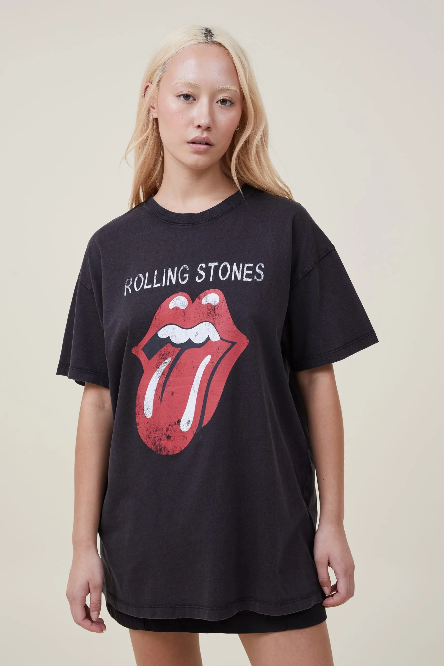 The Oversized Rolling stones Music tee, previously called The boyfriend graphic tee is a slouching fitting t-shirt with in-house designed graphic prints. The dropped shoulder adds to the relaxed feel while the soft cotton jersey means all day comfort.