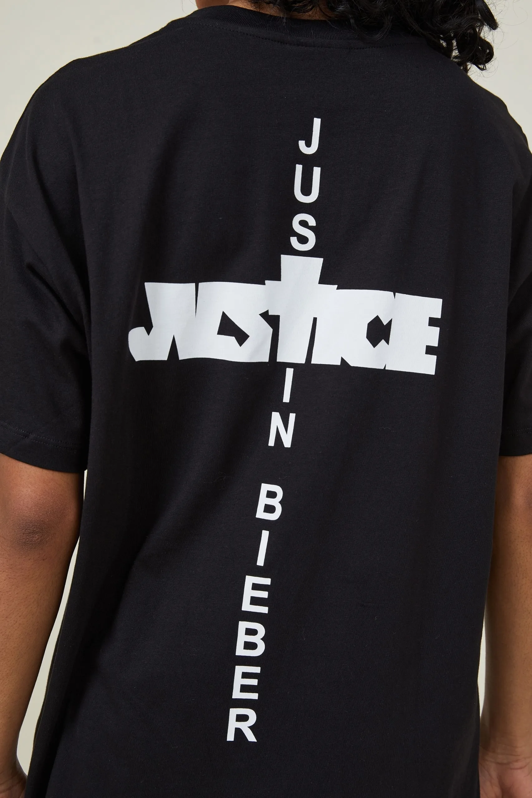 The special edition tee is a slouching fitting t-shirt with a Justin Bieber print. The dropped shoulder adds to the relaxed feel while the soft cotton jersey means all day comfort.
