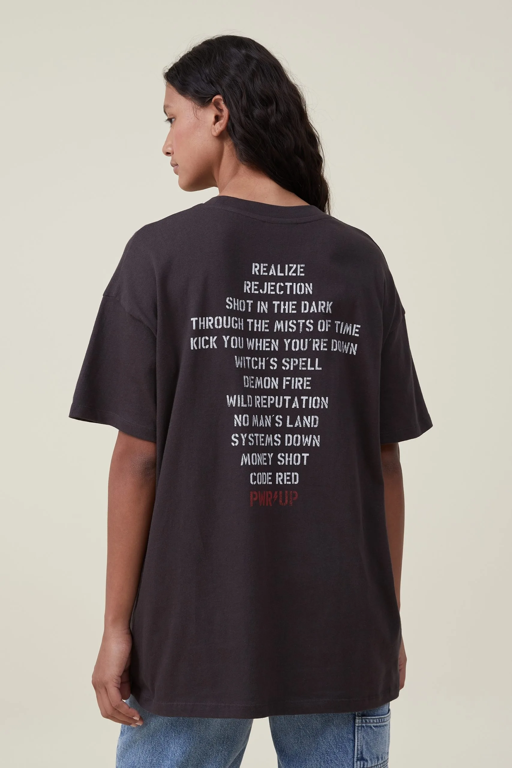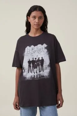 The Oversized ACDC TEE, previously called The boyfriend graphic tee, is a slouching fitting t-shirt with in-house designed graphic prints. The dropped shoulder adds to the relaxed feel while the soft cotton jersey means all day comfort.